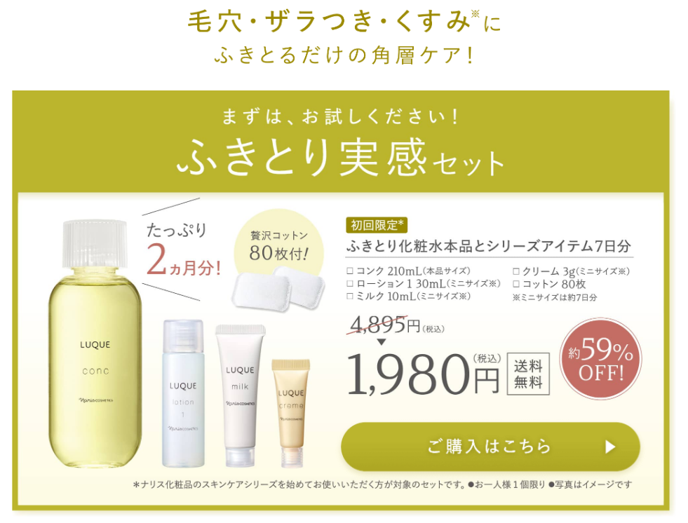 ルクエは、拭き取り化粧水として人気のスキンケアシリーズです。